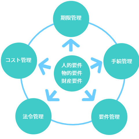 期限管理 | 手続管理 | 要件管理 | 法令管理 | コスト管理 | ||